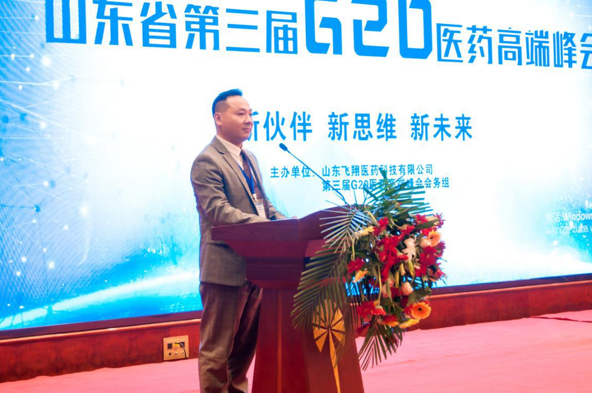 隨后中國(guó)民營(yíng)醫(yī)院協(xié)會(huì)委員,山東省G20醫(yī)藥高端峰會(huì)創(chuàng)立者和倡導(dǎo)者,第一屆G20醫(yī)藥高端峰會(huì)主席王洪喜致辭,感謝山東飛翔醫(yī)藥科技有限公司對(duì)本次大會(huì)的支持,對(duì)會(huì)議的召開(kāi)表示熱烈的祝賀并預(yù)祝本次會(huì)議取得圓滿(mǎn)成功。